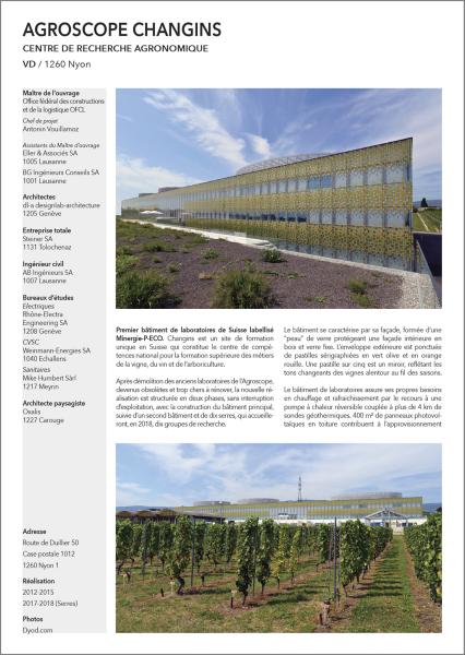 Premier bâtiment de laboratoires de Suisse labellisé Minergie-P-ECO. Changins est un site de formation unique en Suisse qui constitue le centre de compétences national pour la formation supérieure des métiers de la vigne, du vin et de l’arboriculture.