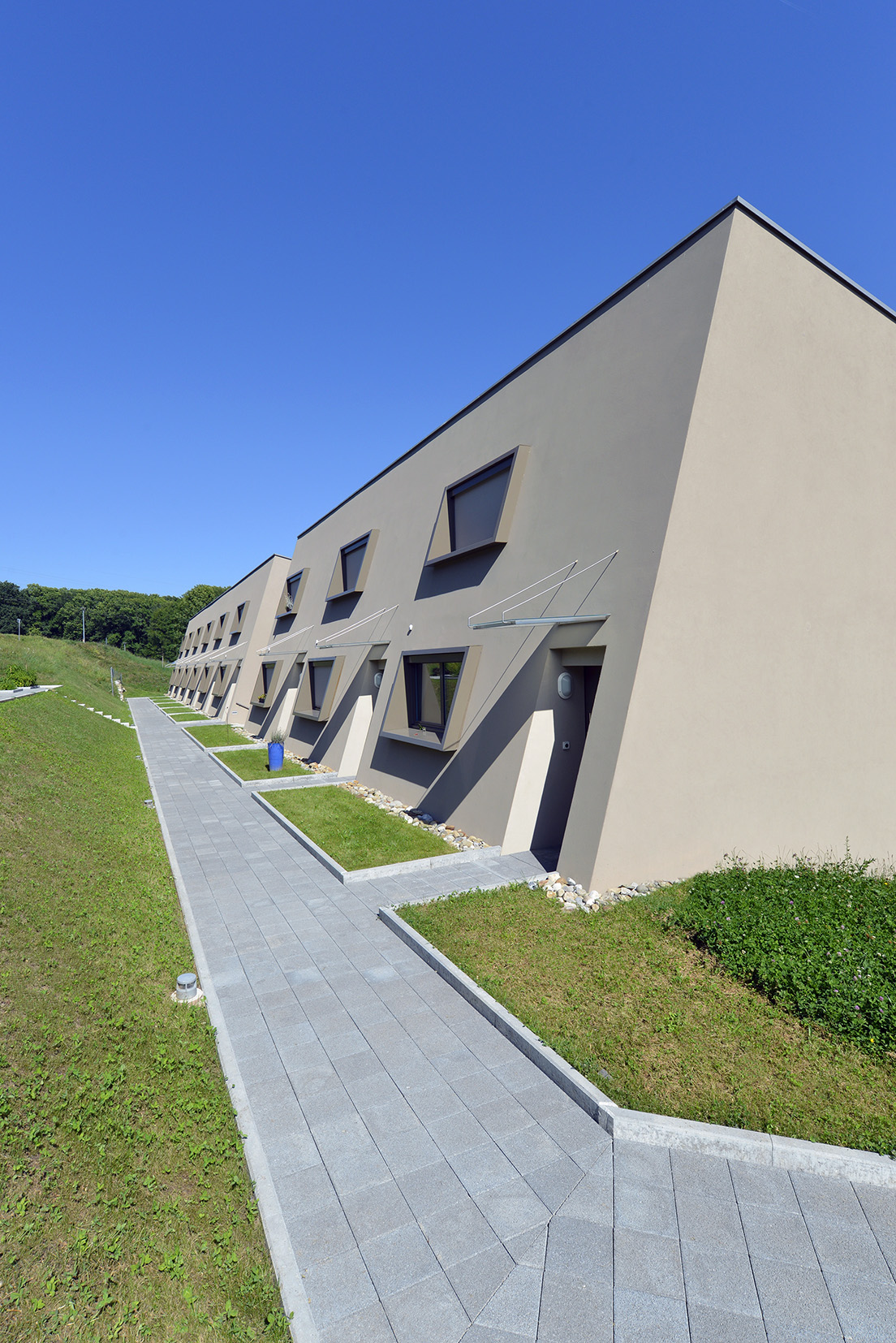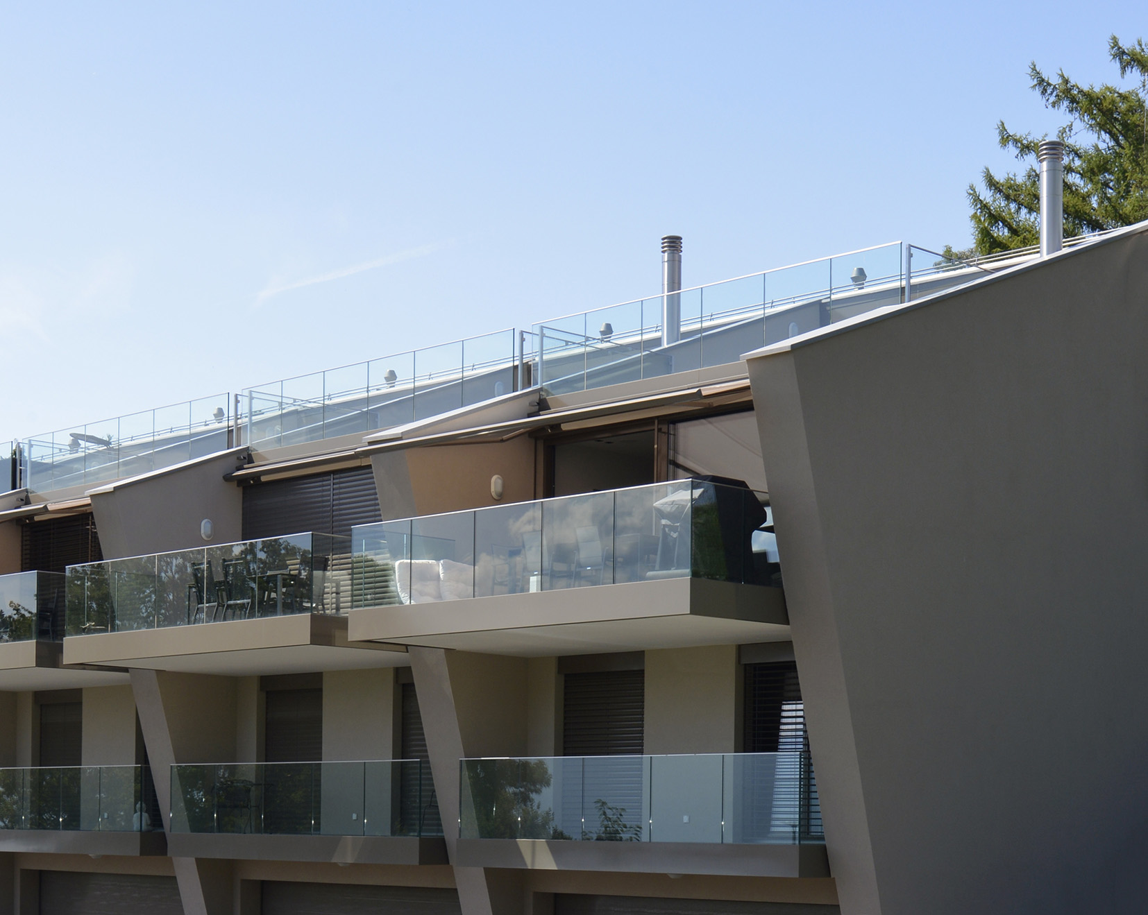 L’idée forte du projet surprend d’emblée, avec ces villas qui semblent se pencher vers le lac pour mieux profiter du cadre exceptionnel à l’orée des vignes du Lavaux, inscrit au patrimoine mondial de l’UNESCO.