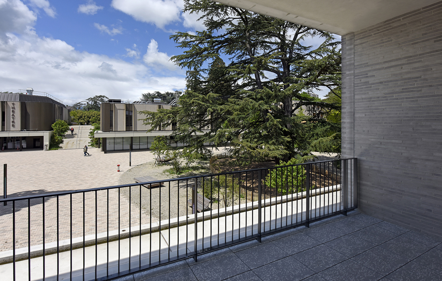 De nature minérale, ce volume se compose d’une structure porteuse en béton à l’intérieur. Les trois déclinaisons d’ouvertures en façades participent à la lecture des fonctions intérieures, pans entiers de "claustra", grandes ouvertures, pour les unes "lisses" et pour les autres en retrait. Les fonctionnalités sont réparties sur trois niveaux, dotés chacun d’un hall / foyer propices aux regroupements et à la convivialité. Un escalier central représentatif permet une bonne connection entre ces halls superposés.