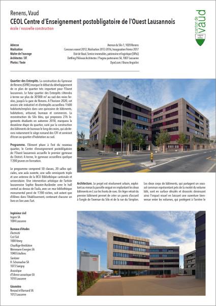 Programme. Elément phare à l’est du nouveau quartier, le Centre d’enseignement postobligatoire de l’Ouest lausannois accueille le premier gymnase du District. A terme, le gymnase accueillera quelque 1’200 jeunes en formation.