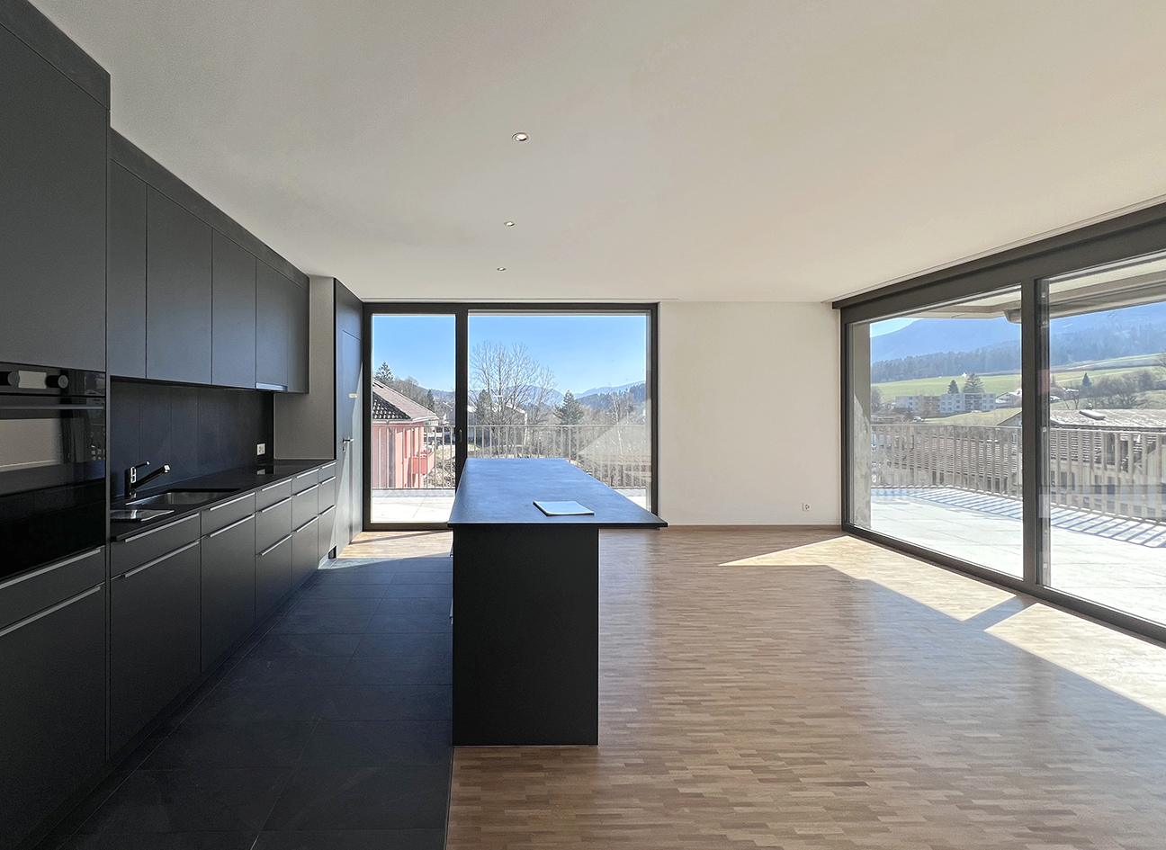 Dans les appartements, les sols sont revêtus de parquets en bois massif à petites lames de chêne posées à l’anglaise. Chaque immeuble est traité de manière autonome, permettant si souhaité une gestion séparée ou la vente d’une tranche du projet. Chaque immeuble a son introduction électrique et d’eau indépendante, le chauffage et la production d’eau chaude sont assurés pour chaque entité par une pompe à chaleur air-eau.