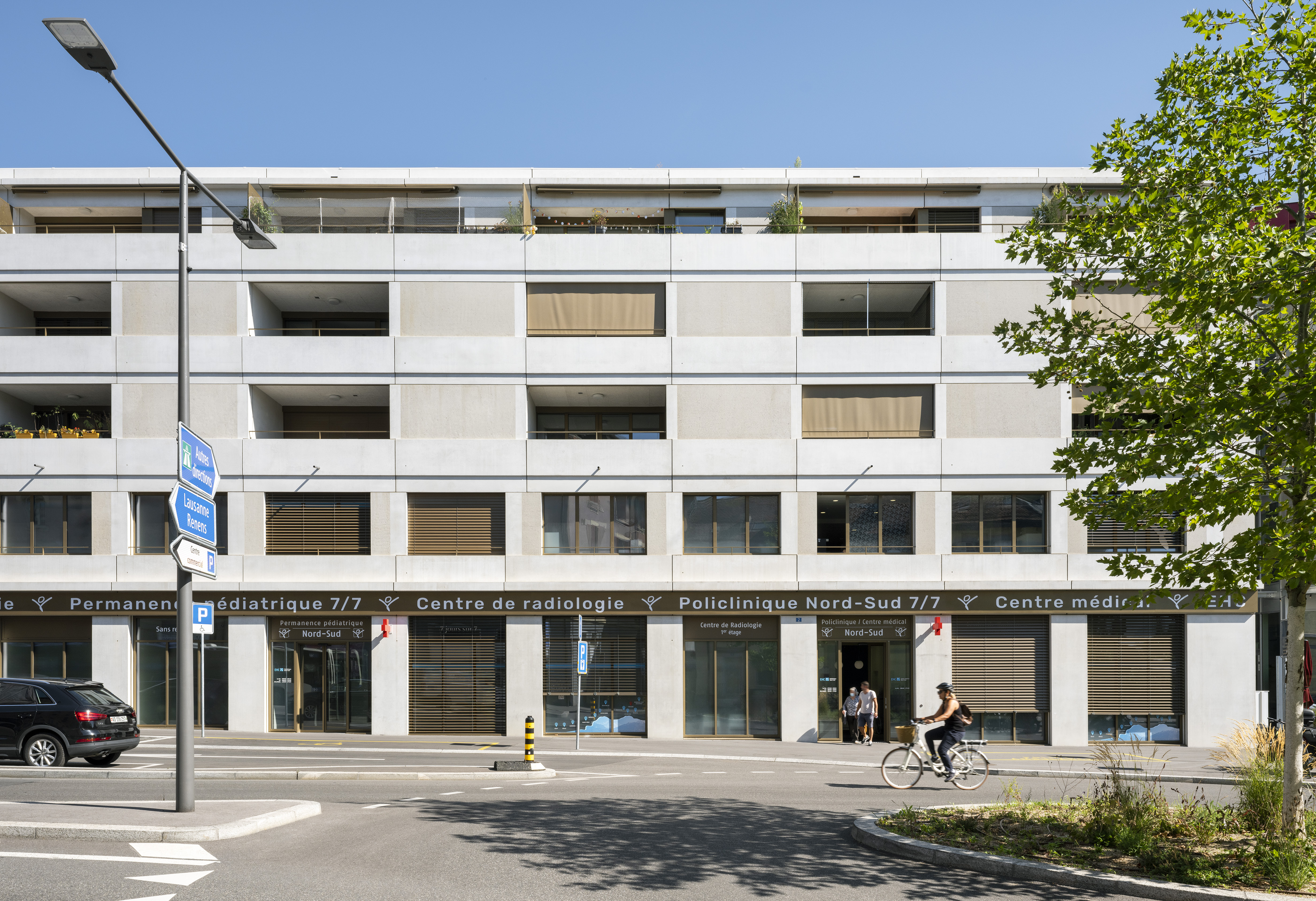 Construction traditionnelle et rationnelle. Une structure poteau-dalle en béton forme la structure des bâtiments, habillés en façades d’une tôle ondulée en aluminium recyclé à 30%. Ce matériau permet un démontage ultérieur pour l’entretien et son recyclage à la fin de son cycle de vie. Mixte, moderne et respectueux de l’environnement, le quartier offre tous les avantages de la vie en ville dans un cadre verdoyant.