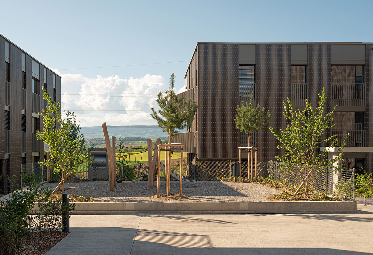Les logis de Prilly offrent un grand nombre d’espaces publics de qualité et diversifiés. Chaque bâtiment possède un espace de repos et de verdure accessible depuis la contre-allée et garantissant une visibilité sur le paysage au sud. L’espace public à l’est, où se réunissent les activités, se présente comme une grande place couverte dans le prolongement de l’arrêt des transports publics (bus-futur tram).