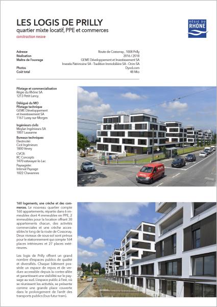 Le nouveau quartier compte 160 appartements, répartis dans 6 immeubles dont 4 immeubles en PPE, 2 immeubles pour la location offrant 30 appartements chacun, des activités commerciales et une crèche accessibles le long de la route de Cossonay. Deux niveaux de sous-sol sont prévus pour le stationnement qui compte 164 places intérieures et 27 places extérieures.