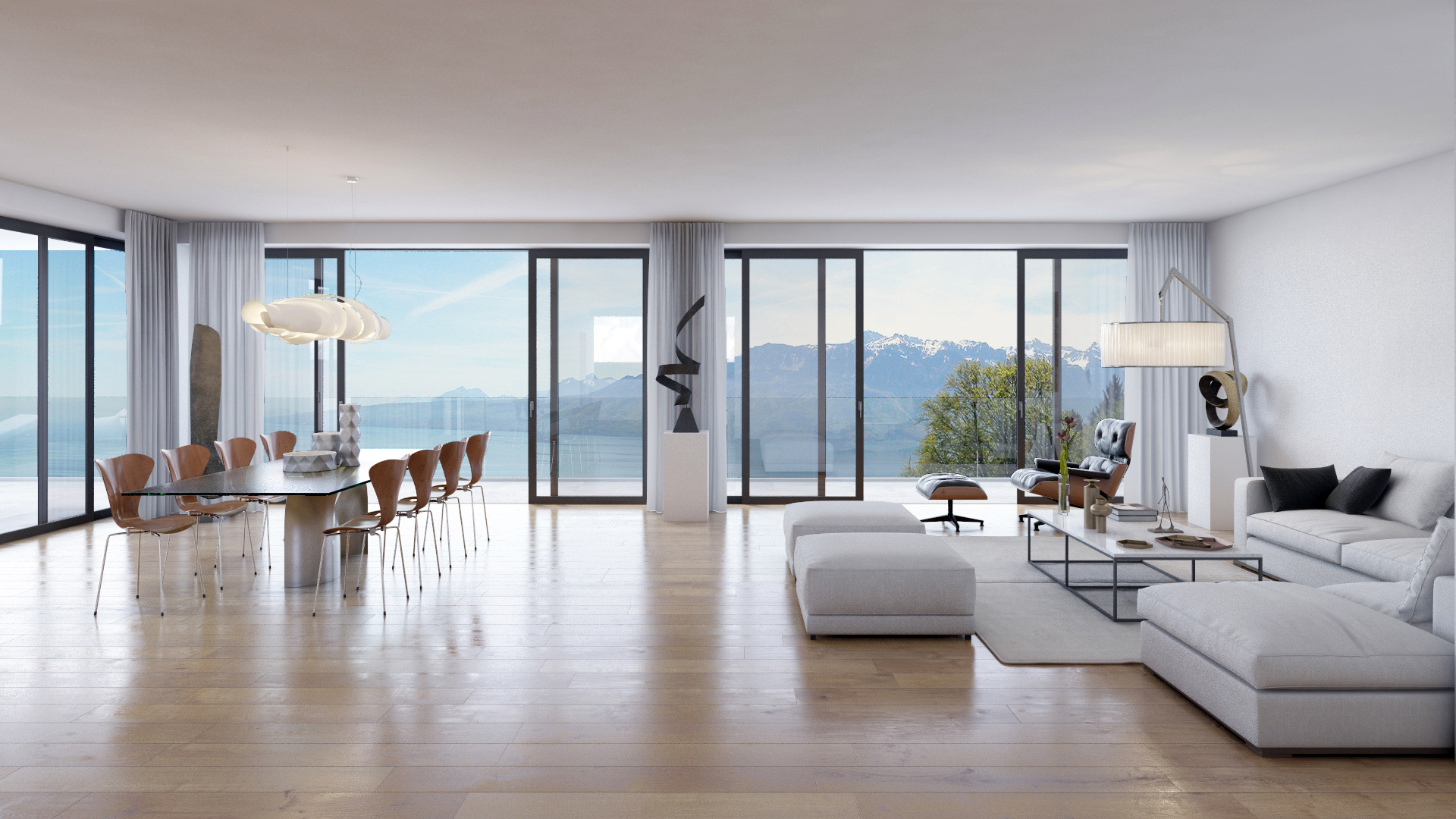 Le bâtiment, composé du rez-de-chaussée, plus quatre étages et attiques, comprendra 43 appartements allant du 2.5 pièces de 55 m2 au 5.5 pièces en attique, d’une surface de 278 m2. La sobriété de l’architecture met en scène la nature grâce à de grandes baies vitrées permettant d’admirer le paysage et de laisser pénétrer la lumière. Les appartements affichent de généreuses hauteurs sous plafond et un niveau de finitions extrêmement soigné. Un hôtel et un restaurant semi-gastronomique compléteront bientôt ce complexe d’exception. Un service d’étage sera assuré aux résidents.
