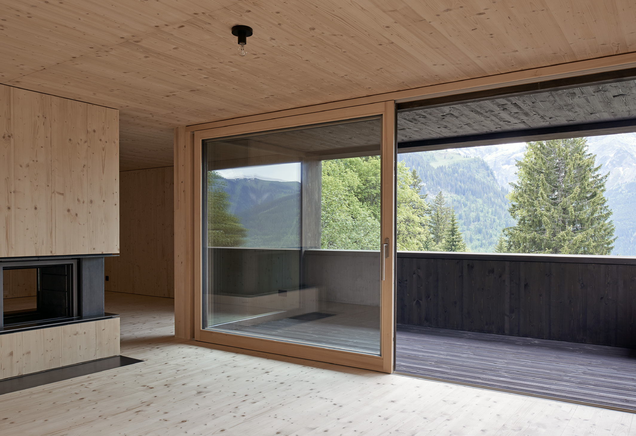 Ré-interprétation des codes vernaculaires. La maison de vacances s’implante à la lisière de la forêt, sur une parcelle pentue située dans une petite clairière sur les hauteurs du village des Diablerets. Le volume reprend de manière archétypale les éléments basiques qui composent l’architecture vernaculaire de la région alpestre, soit un socle minéral, un volume en bois et une toiture à larges débordements. Les espaces de vie, situés au rez-de-chaussée, se prolongent au sud par une loggia creusée dans le volume. L’enveloppe du bâtiment est réalisée en lames de mélèze disposées horizontalement et protégées par une lasure foncée. La toiture est composée de bacs en cuivre oxydé. La structure se compose de trois poutres de toiture reposant sur huit porteurs verticaux. Le plancher sur rez-de-chaussée est quant à lui suspendu à la toiture, de manière à libérer l’espace de vie. Conçue selon les principes du label Minergie. L’énergie de chauffage est produite par une pompe à chaleur géothermique en complément de panneaux solaires photovoltaïques intégrés soigneusement en bordure de la toiture en cuivre Projet épuré et minimaliste. Avec ses éléments de toiture à la fois porteurs et finis ainsi que ses chevrons affinés, la maison de vacances s’affirme comme une réalisation à haute exigence technique mais visuellement simple et authentique.Si les fondations sont en béton, tous les éléments hors terre sont en bois, de la structure des murs aux planchers en passant par le revêtement intérieur et extérieur. Un soin tout particulier a été porté à l’alignement du bardage sur le socle béton, comme à la position des menuiseries par rapport aux lames de bardage et des chevrons avec les joints de la couverture. Un important travail de préfabrication en atelier a permis une édification rapide in situ, évitant les aléas climatiques.