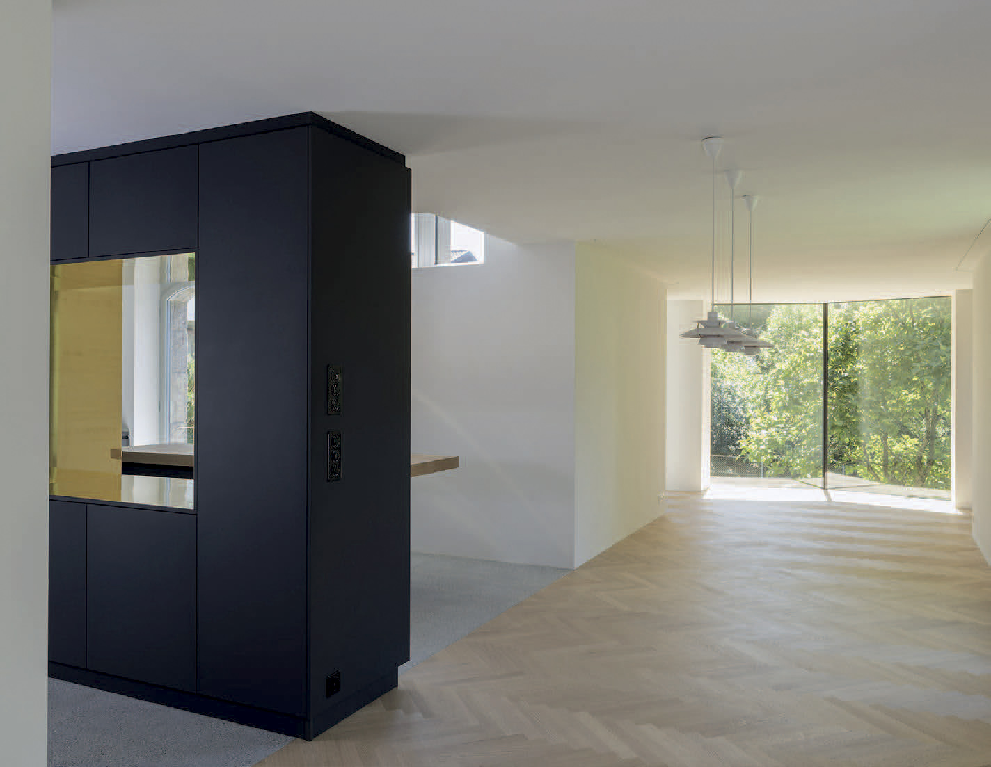 La maison Le Closy, au lieu-dit le Petit Verdonnet, signée en 1903 par l’architecte lausannois Georges Epitaux, est typique du Heimatstil, cher à ce dernier au début de sa carrière. Décorée, ornementée, et fortement structurée par les ordres de son écriture architecturale, elle est représentative et significative d’une architecture du début du 20ème siècle. La façade est constituée de trois ordres. Le premier, en pierres de Meillerie percé de fenêtres cintrées, abrite le rez et un sous-sol. Un crépi rend lisible le 1er étage, tandis qu’un toit mansardé, rythmé de lucarnes, couronne l’édifice et le rend pittoresque. À l’origine constituée d’un appartement principal sur deux niveaux et d’un logement de rendement aux combles, la maison était desservie par une cage d’escalier commune. Le projet rassemble l’entier des surfaces habitables dans un seul et unique logement. L’escalier, témoignage de l’histoire de la maison, a été réintégré à l’intérieur du logement. Une double hauteur existante a été prolongée en triple hauteur afin de reconstituer l’unicité de la nouvelle typologie. Celle-ci articule les programmes à chaque étage, grâce à trois meubles qui génèrent les différentes séquences et espaces. Deux matériaux de sol expriment eux la dualité du plan en proposant des atmosphères différenciées.