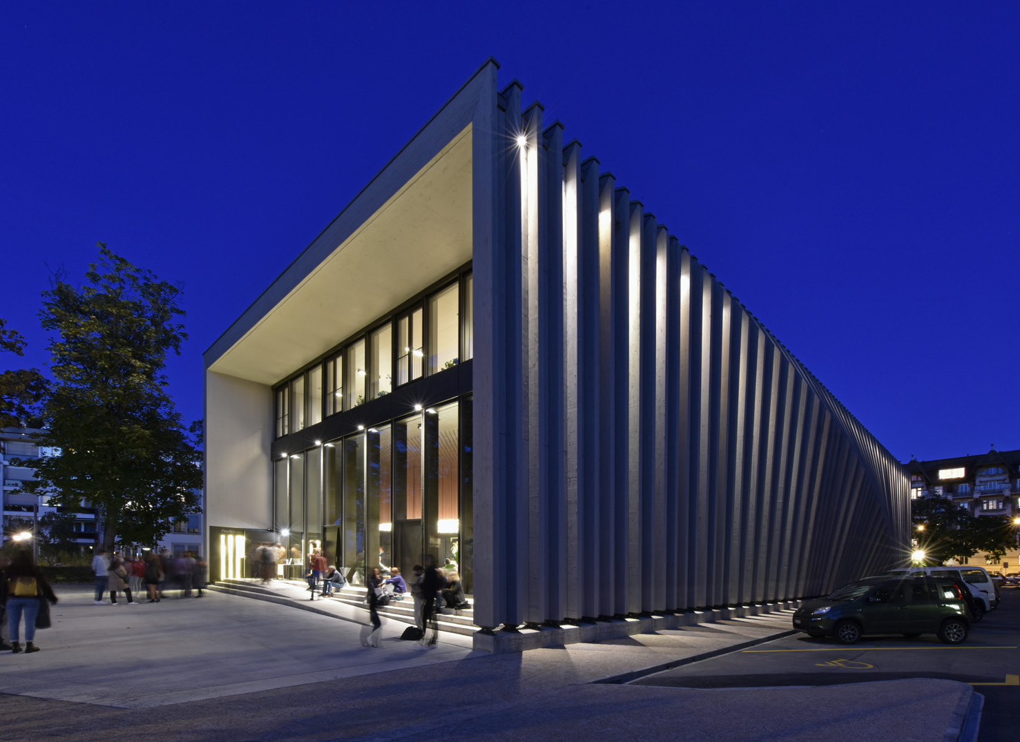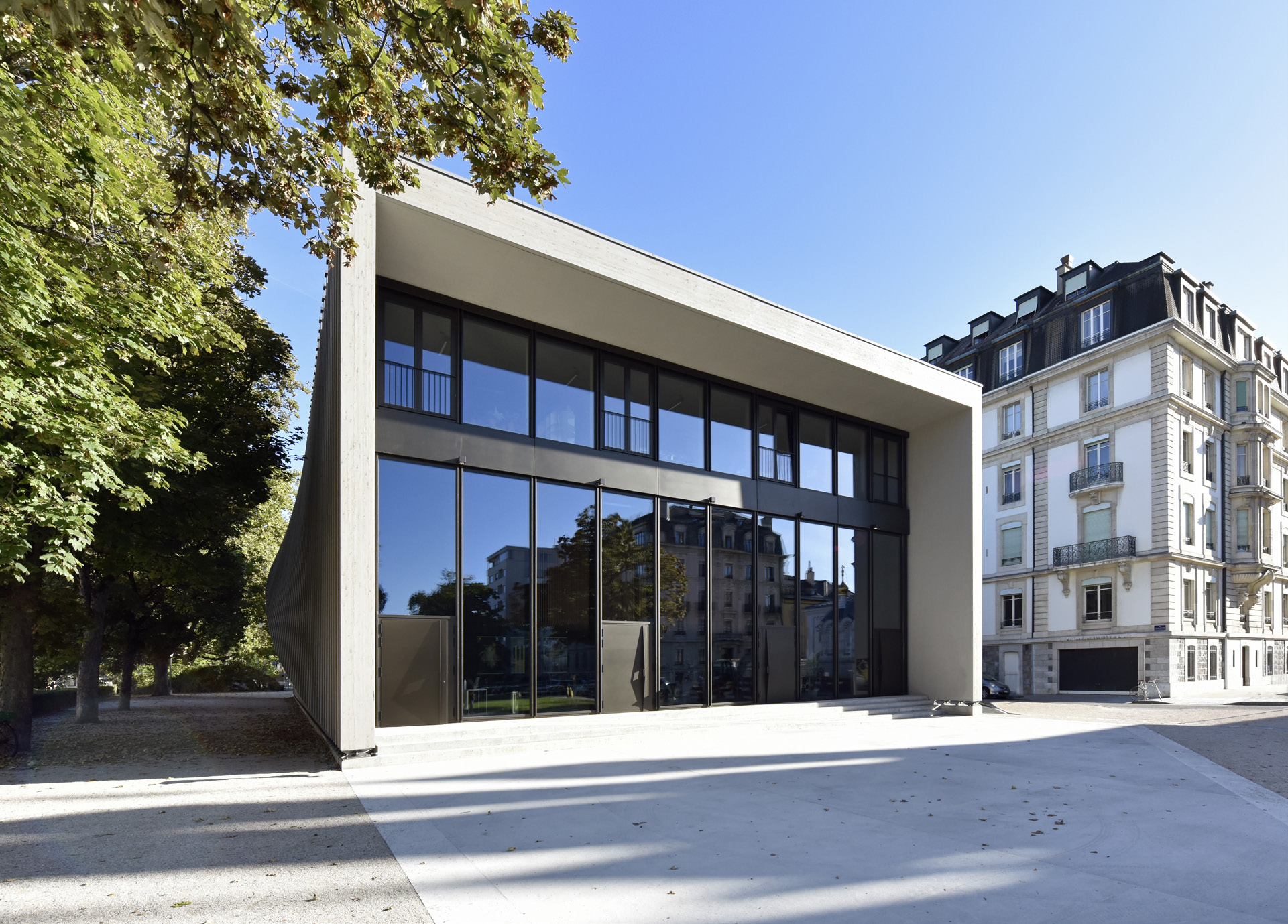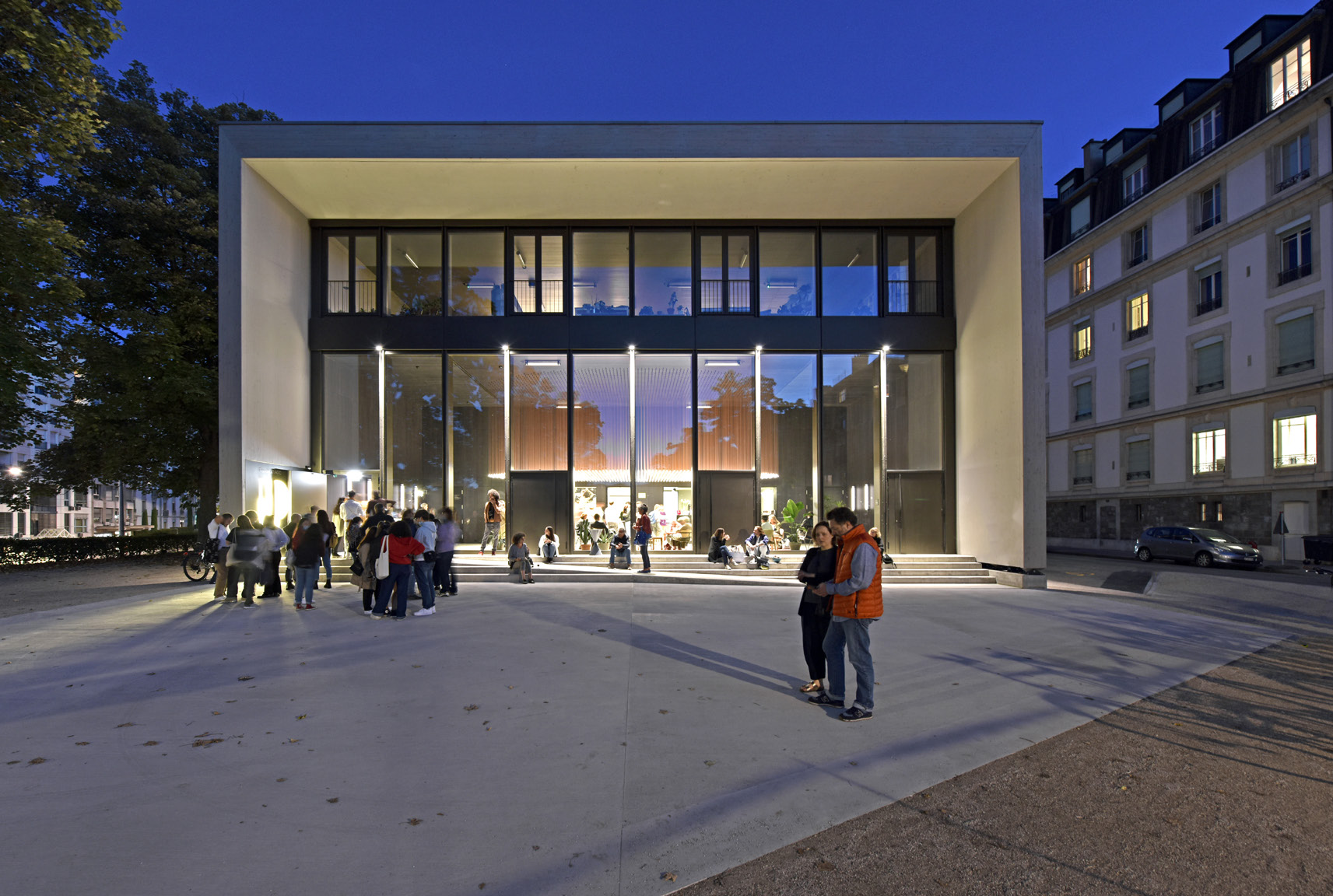 Son implantation permet de préserver l’unité de la place et de maintenir le service de la voirie. Il entre en dialogue, côté Jura, avec l’Eglise russe et s’ouvre sur le restant de la place, renforçant le sentiment d’une place promontoire. La place Sturm bénéficie par ailleurs d’un aménagement complet devenant ainsi un bel espace public.