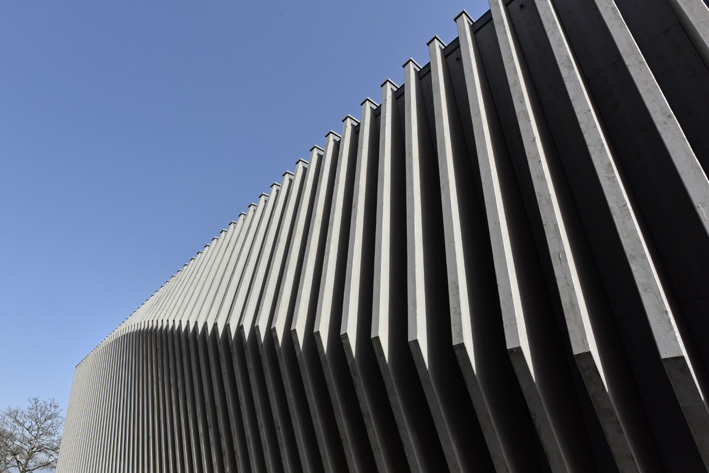 Architecture choisie. Le projet proposé par le bureau On Architecture de Lausanne, lauréat du concours, est structuré par des cadres en bois autoporteurs qui s’échelonnent à intervalle régulier, mais dont les profils sont variables, sorte de figure de gradation générant une torsion sur les façades longitudinales et le toit de l’édifice. Comme si le vent s’était engouffré dans ce dernier, provoquant une légère dilatation des parois. Les architectes se sont inspirés de la chronophotographie, une technique qui décompose l’objet photographié en différentes séquences pour en étudier le déplacement.