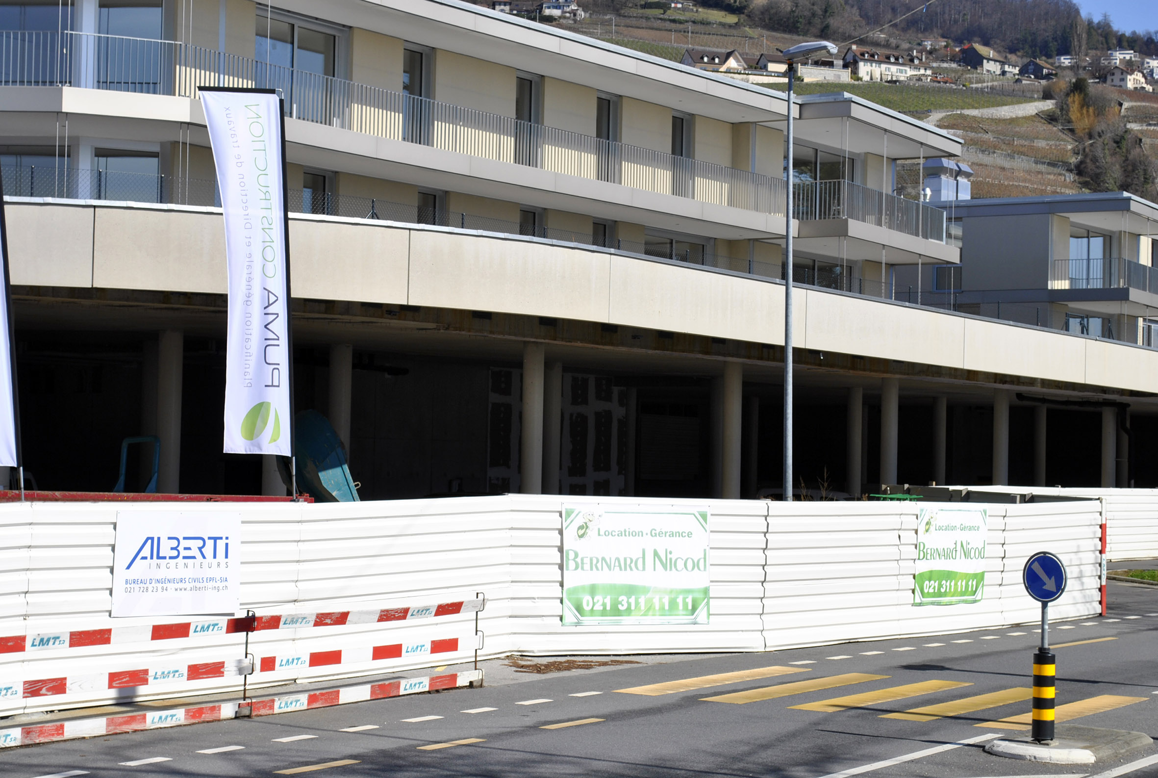 Construction de 5 immeubles locatifs mixtes. 60 logements du studio au 5 pièces 1/2, 5'000 m2 de surfaces artisanales, commerciales et bureaux, activités (Garage Toyota, carrosserie) et centre commercial Coop.