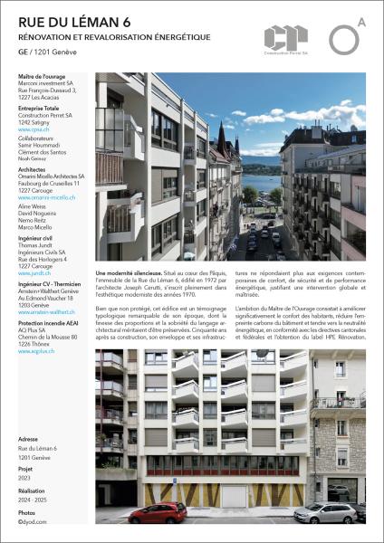 Par cette intervention, l’immeuble de la Rue du Léman 6 se transforme en un exemple abouti de rénovation énergétique et architecturale, conciliant respect du patrimoine construit, sobriété esthétique et des ambitions environnementales contemporaines.
