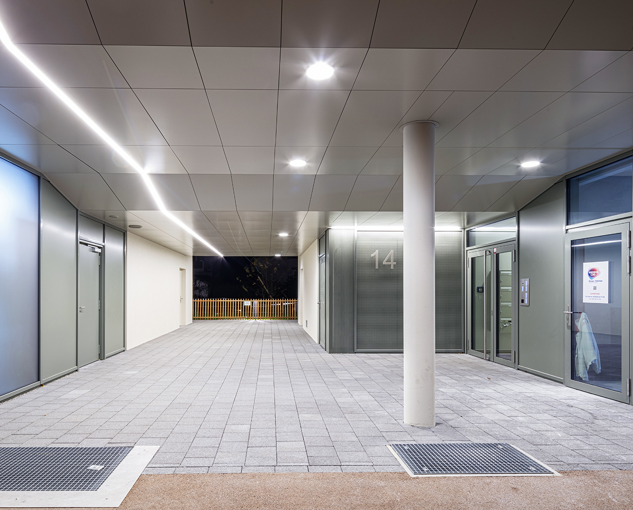 Entre verdure et urbanité. Situé à proximité de la gare du CEVA sur la Commune de Chêne-Bourg, ce projet d’immeuble innovant se distingue par son objectif ambitieux de marier l’habitat individuel et les espaces collectifs, tout en créant une symbiose entre l’urbanité et la nature. Un concept audacieux qui invite à repenser la manière dont nous habitons et interagissons avec notre environnement. Le projet se compose de 60 logements locatifs (31 HM et 29 ZD LOC) , 20 appartements PPE et 4 arcades commerciales.