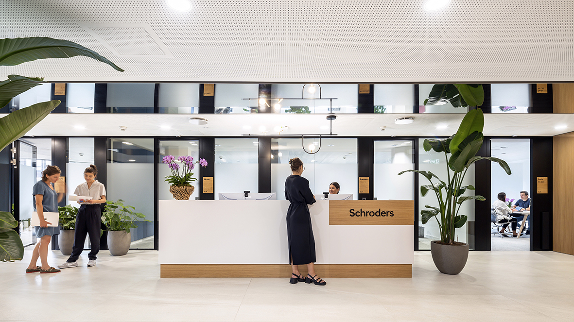 Quartier Eaux-Vives Genève. Installés depuis de nombreuses années au cœur de Genève, désormais à l’angle de la Rue de Jargonnant et de l’Avenue Pictet-de-Rochemont, le groupe Schroders est un acteur majeur de la gestion d’actifs en Suisse et dans le monde. Le bâtiment des années 80 nécessitait à la fois une remise à niveau des techniques et une modernisation des espaces.