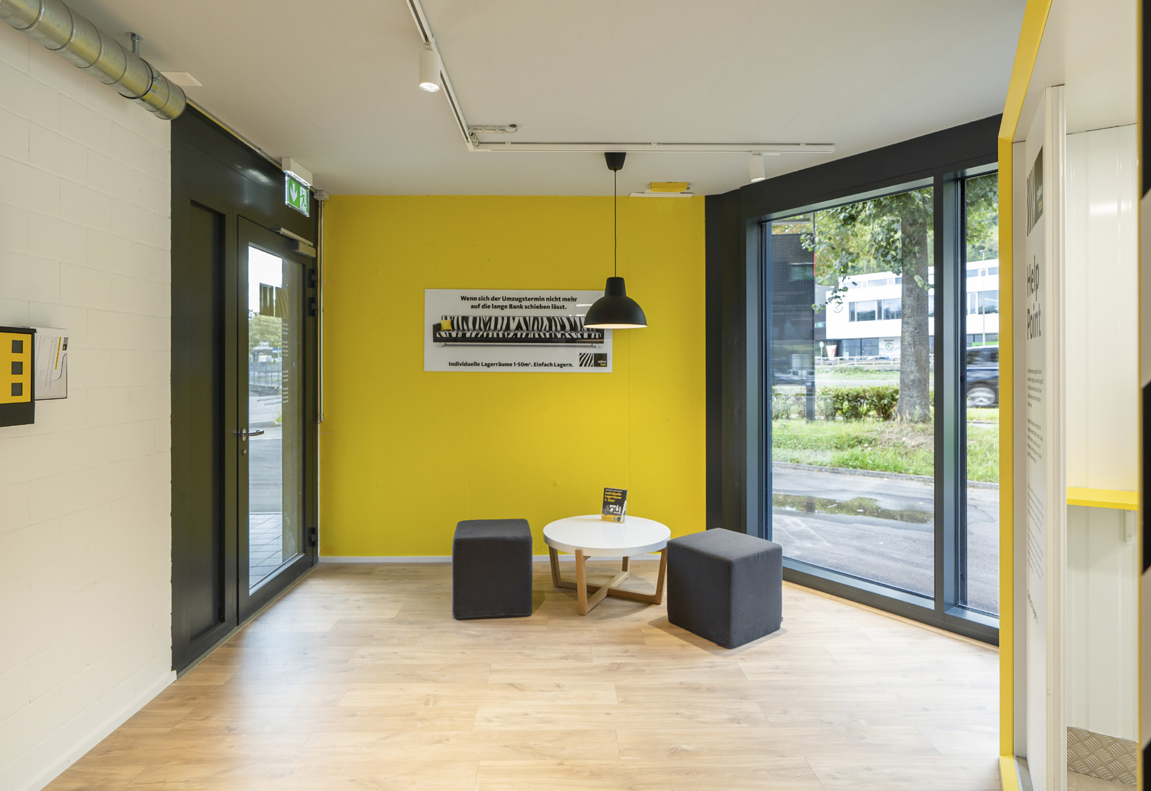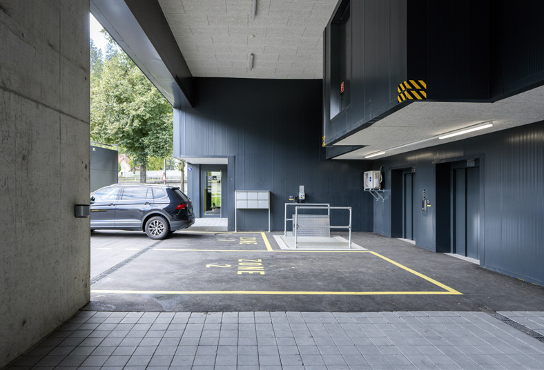 Spécialement optimisé pour le self-stockage. Le nouveau bâtiment est innovant. Remarquable par son architecture moderne, il l’est aussi par sa technologie. Dans la zone d’accueil, une self check-in box offre aux clients la possibilité de louer directement un espace de stockage disponible via l’écran tactile. Dans l’esprit du self-stockage, l’idée est que tout fonctionne sans collaborateur sur site, le service à la clientèle étant assuré par un call-center distant. L’accès à la réception et aux locaux de stockage est contrôlé par code ou téléphone portable. Une réussite fonctionnelle et technique pour cette première réalisation dont les zébrures corporate intégrées à l’architecture des façades accentuent la visibilité de l’enseigne depuis l’autoroute A1 sur laquelle 100’000 véhicules circulent quotidiennement entre Zurich et Winterthur.
